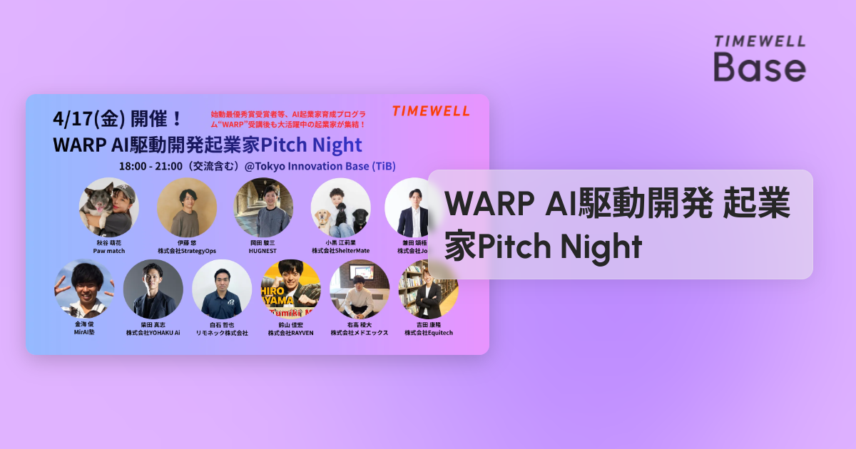 🎉 WARP AI駆動開発起業家PITCH NIGHT〜 TOKYO SUTEAM延長採択記念・第6期プログラム概要説明会&卒業生ピッチイベント 〜イベント概要TOKYO SUTEAM延長事業への採択、そして第6期(5月13日スタート)開...